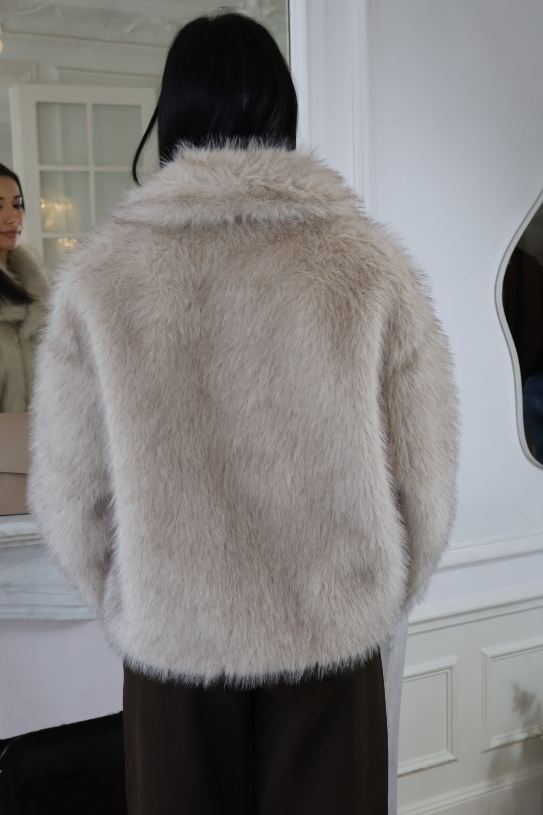PREMIUM TAUPE-KUNSTPELZMANTEL